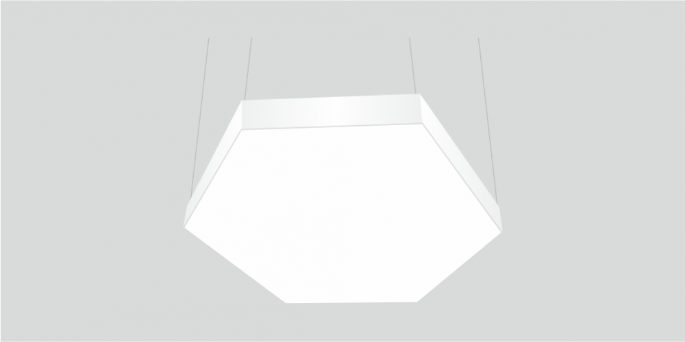 Светодиодный светильник в виде гексагона LiNE-PRO мощностью 40 Вт 500 мм изготовлен из алюминиевого основания, с установленными на него светодиодными модулями. Возможна различная цветовая температура - 3000К, 4000К, 5000К, 6000К. Боковины могут быть изготовлены из плотного ПВХ различного цвета, на выбор или светотехнического акрила и выполнять функцию рассеивателя. Блок питания внутри корпуса светильника. Монтаж на тросовых подвесах или непосредственно к потолку или стене.