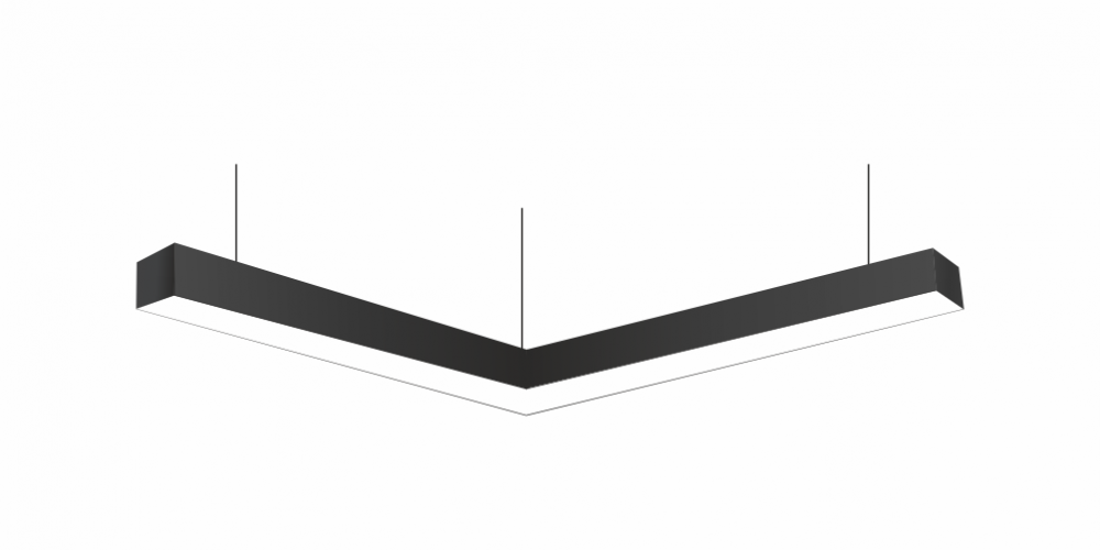 Светодиодный Угловой светильник LiNE-Pro 120гр. 1000х1000mm 80W 3000K черный предназначен для накладного или подвесного монтажа на тросовые подвесы. Изготовлен из сплошного сварного алюминиевого профиля в виде угла под 120 градусов. Высота установки светильника регулируется подвесом с цанговым тросовым зажимом и может варьироваться от 0,05 метра до 4 метров от основного потолка. Светильник имеет равномерную засветку по всей площади рассеивателя. Источник питания находится внутри корпуса. Торцевые заглушки входят в комплект. Возможно изготовление светильника с магистральной проводкой для соединения нескольких светильников в сплошную конструкцию.