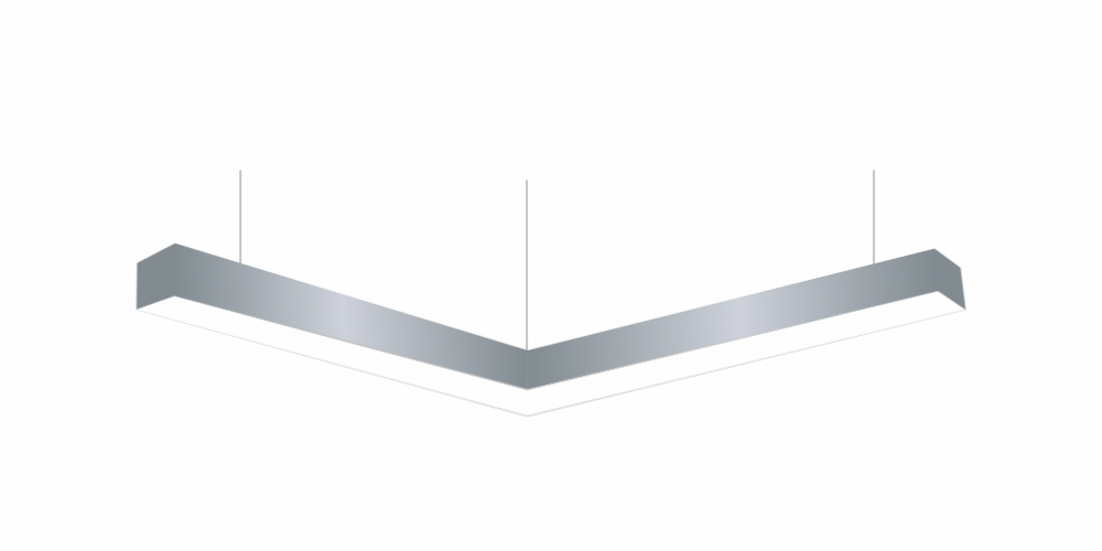 Светодиодный Угловой светильник LiNE-Pro 120гр. 500х500mm 20W 3000K серый предназначен для накладного или подвесного монтажа на тросовые подвесы. Изготовлен из сплошного сварного алюминиевого профиля в виде угла под 120 градусов. Высота установки светильника регулируется подвесом с цанговым тросовым зажимом и может варьироваться от 0,05 метра до 4 метров от основного потолка. Светильник имеет равномерную засветку по всей площади рассеивателя. Источник питания находится внутри корпуса. Торцевые заглушки входят в комплект. Возможно изготовление светильника с магистральной проводкой для соединения нескольких светильников в сплошную конструкцию.