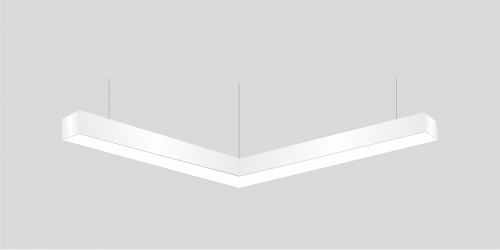 Светодиодный Угловой светильник LiNE-Pro 120гр. 500х500mm 40W 5000K белый предназначен для накладного или подвесного монтажа на тросовые подвесы. Изготовлен из сплошного сварного алюминиевого профиля в виде угла под 120 градусов. Высота установки светильника регулируется подвесом с цанговым тросовым зажимом и может варьироваться от 0,05 метра до 4 метров от основного потолка. Светильник имеет равномерную засветку по всей площади рассеивателя. Источник питания находится внутри корпуса. Торцевые заглушки входят в комплект. Возможно изготовление светильника с магистральной проводкой для соединения нескольких светильников в сплошную конструкцию.