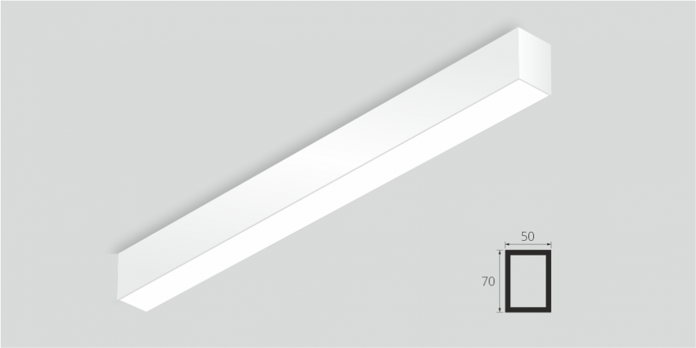 Линейный светодиодный Накладной светильник LiNE-Pro 70x50 500mm 8W 6000K Белый предназначен для накладного монтажа на ровную поверхность для любых потолков. Изготовлен из алюминиевого профиля длиной 500 мм, мощностью 8 Вт c цветовой температурой 6000 K, цвет корпуса Белый. Светильник имеет равномерную засветку по всей площади рассеивателя. Источник питания находится внутри корпуса. Торцевые заглушки входят в комплект.