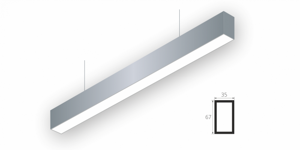Линейный светодиодный Подвесной светильник LiNE-Pro 67x35 1000mm 45W 3000K Серый предназначен для подвесного монтажа на тросовые подвесы. Изготовлен из алюминиевого профиля длиной 1000 мм, мощностью 45 Вт c цветовой температурой 3000 K, цвет корпуса Серый. Высота установки светильника регулируется подвесом с цанговым тросовым зажимом и может варьироваться от 0,05 метра до 4 метров от основного потолка. Линейный светильник может использоваться для реечных потолков. Светильник имеет равномерную засветку по всей площади рассеивателя. Источник питания находится внутри корпуса. Торцевые заглушки входят в комплект.
