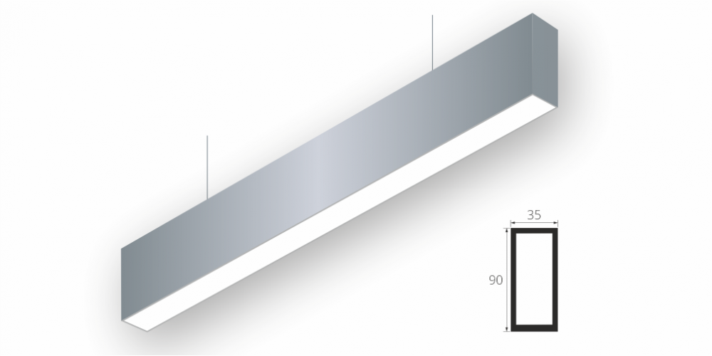 Линейный светодиодный Подвесной светильник LiNE-Pro 90x35 1250mm 75W 4000K Серый предназначен для подвесного монтажа на тросовые подвесы. Изготовлен из алюминиевого профиля длиной 1250 мм, мощностью 75 Вт c цветовой температурой 4000 K, цвет корпуса Серый. Высота установки светильника регулируется подвесом с цанговым тросовым зажимом и может варьироваться от 0,05 метра до 4 метров от основного потолка. Линейный светильник может использоваться для реечных потолков. Светильник имеет равномерную засветку по всей площади рассеивателя. Источник питания находится внутри корпуса. Торцевые заглушки входят в комплект.