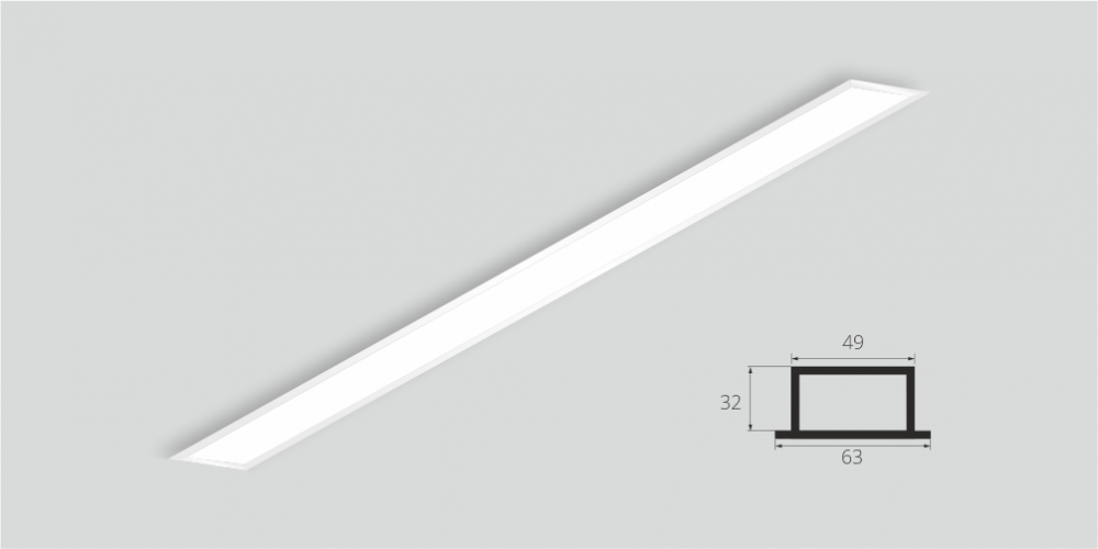 Линейный светодиодный Встраиваемый светильник LiNE-Pro 32x63 1500mm 82W 4000K Белый предназначен для встраиваемого монтажа в потолки из гипсокартона либо в плитки потолка армстронг. Изготовлен из алюминиевого профиля длиной 1500 мм, мощностью 82 Вт c цветовой температурой 4000 K, цвет корпуса Белый. Крепится светильник с помощью комплекта прижимных скоб. Светильник имеет равномерную засветку по всей площади рассеивателя. Источник питания и торцевые заглушки входят в комплект.