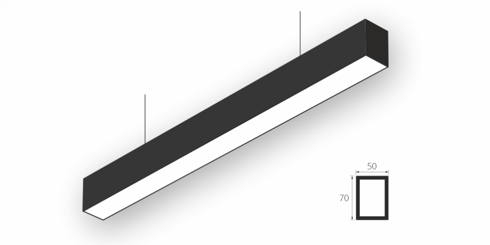 Линейный модульный светодиодный Подвесной светильник LiNE-Pro 70x50 750mm 27W 5000K Черный предназначен для подвесного монтажа на тросовые подвесы. Изготовлен из алюминиевого профиля длиной 750 мм, мощностью 27 Вт c цветовой температурой 5000 K, цвет корпуса Черный. Светильники соединяются в сплошную линию с помощью комплекта линейного соединения и сплошной магистральной проводки. Светильник имеет равномерную засветку по всей площади рассеивателя. Источник питания находится внутри корпуса.